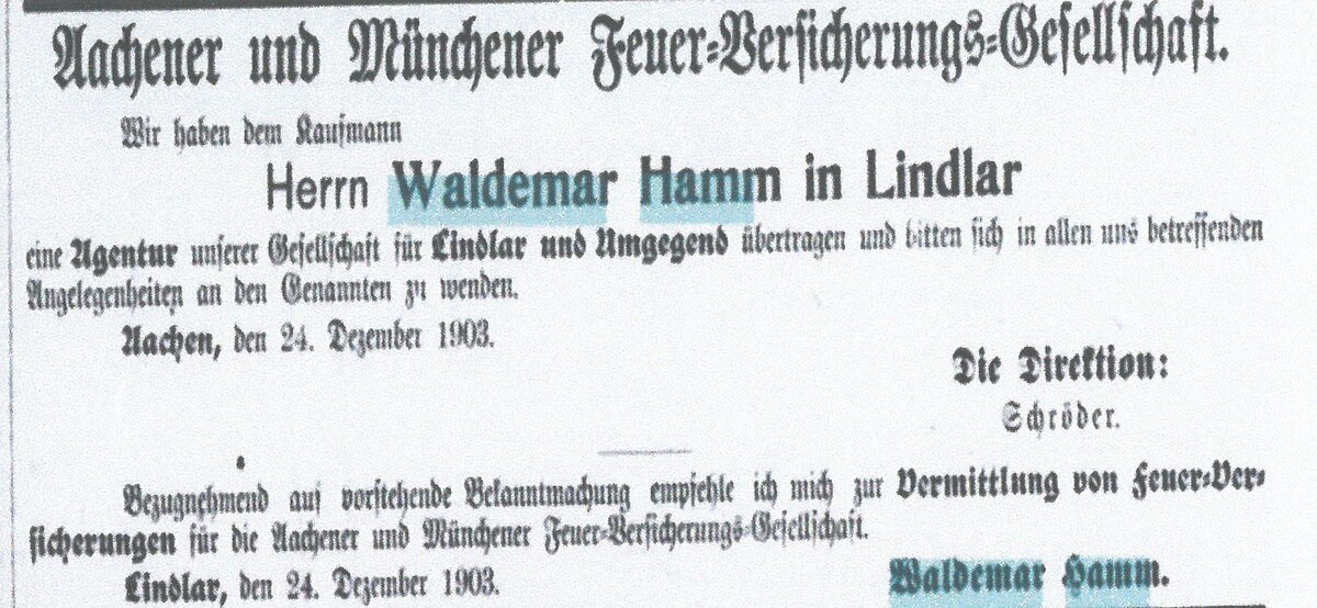 Waldemar Hamm 1873-1953 war Sparkassenbeamter in der „Gemeindesparkasse“und als Obstzüchter bekannt. Die großen Obstwiesen hinter dem Haus in der Eichenhofstraße gehörten seit Viktor Hamm zum Bestand der Familie.