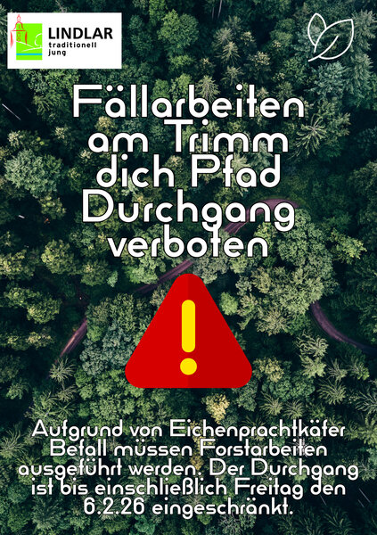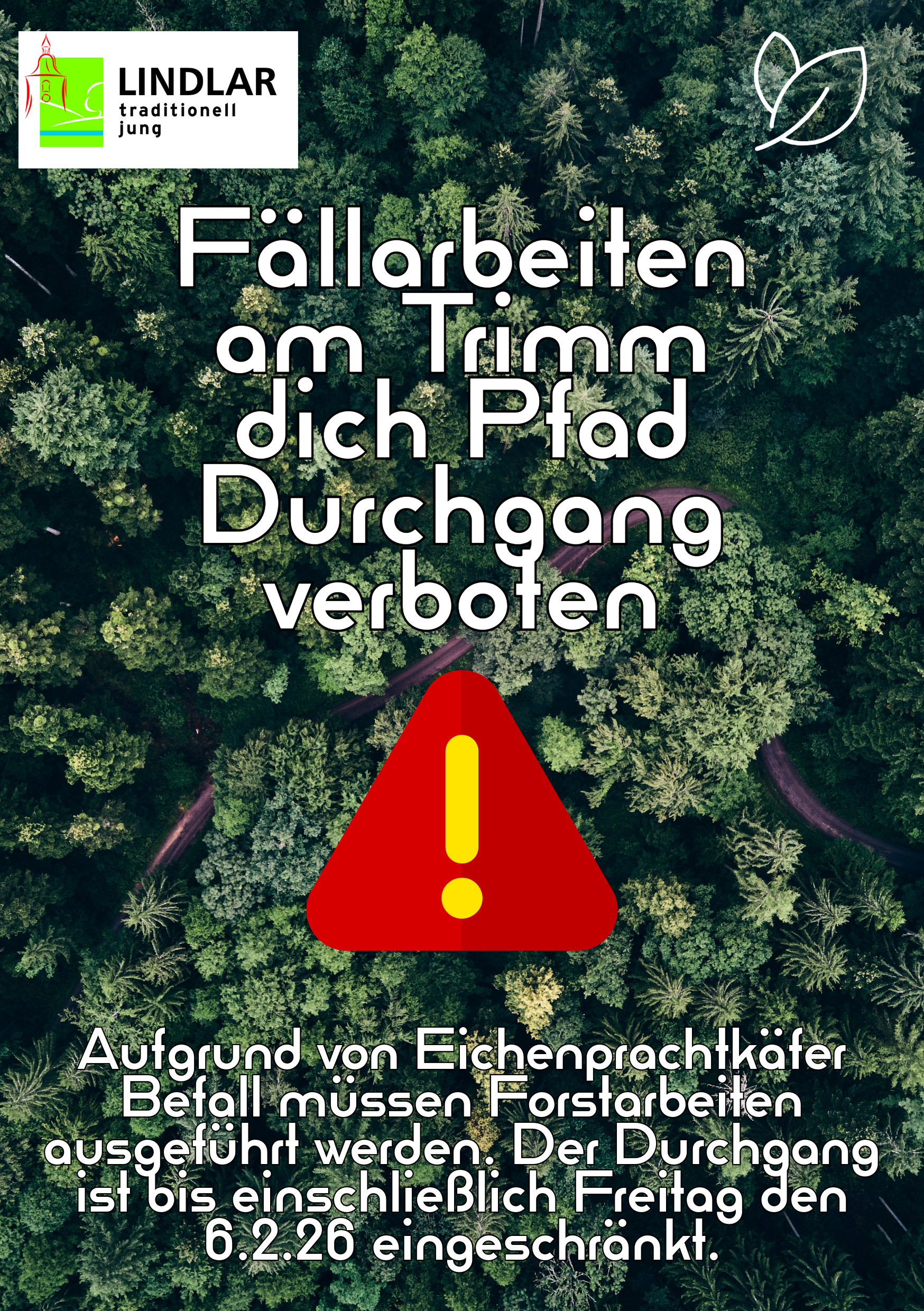 Aufgrund von Befall durch den Eichenprachtkäfer müssen am Trimm-dich-Pfad derzeit Forstarbeiten durchgeführt werden.