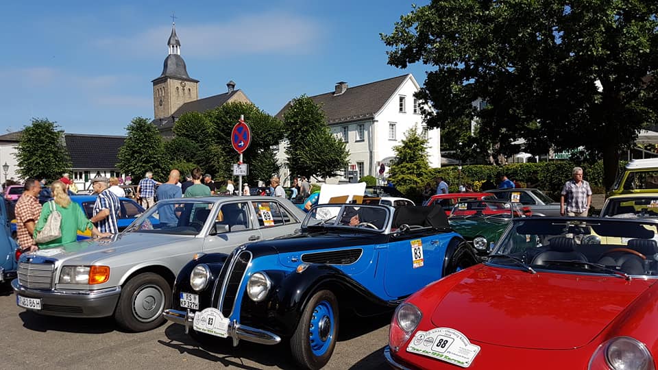 Der Start der beliebten Oldtimer Rallye der Renngemeinschaft Oberberg erfolgt traditionell auf dem Marktplatz in Lindlar.
