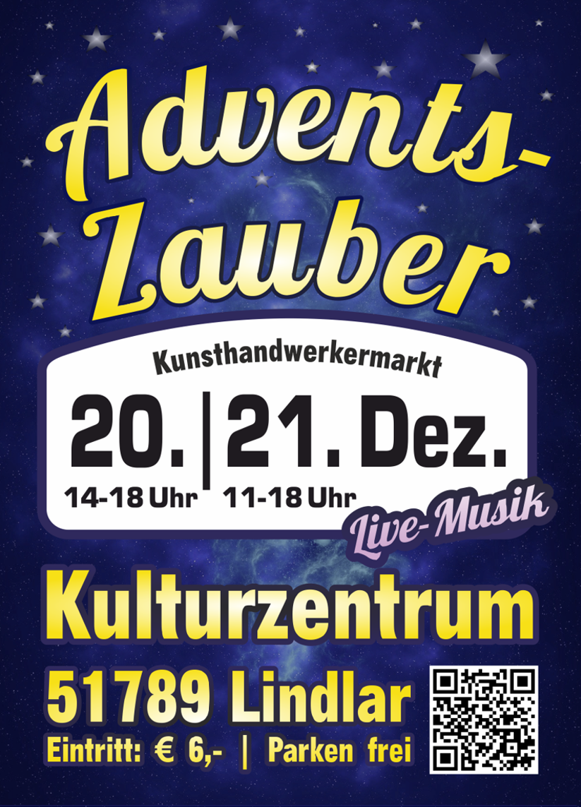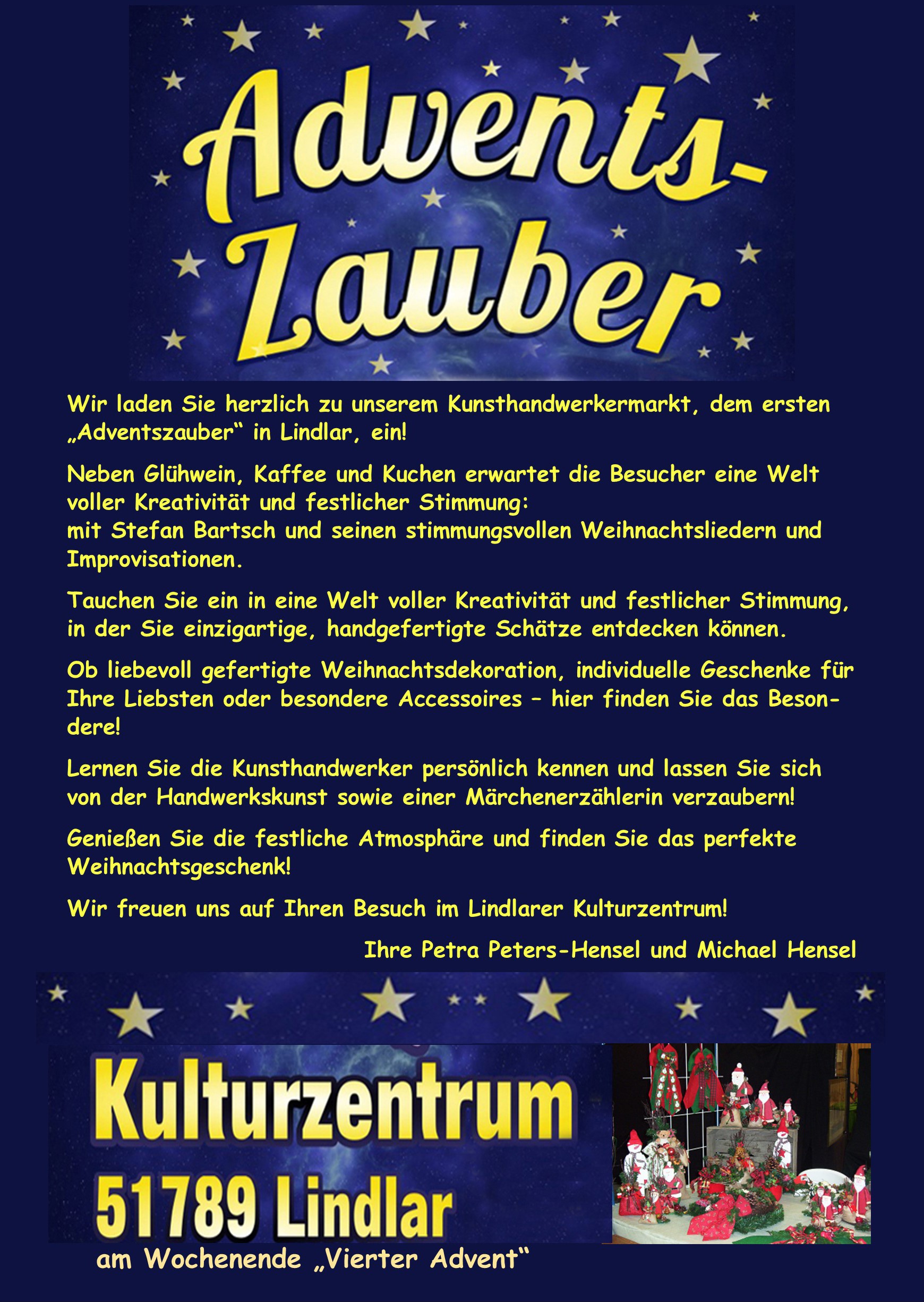 Wir laden Sie herzlich zu unserem Kunsthandwerkermarkt, dem ersten „Adventszauber“ in Lindlar, ein!