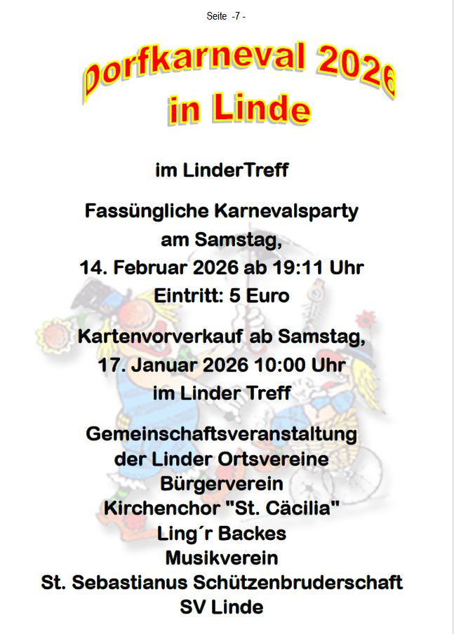 Kartenvorverkauf ab Samstag, 17. Januar 2026 10:00 Uhr im Linder Treff