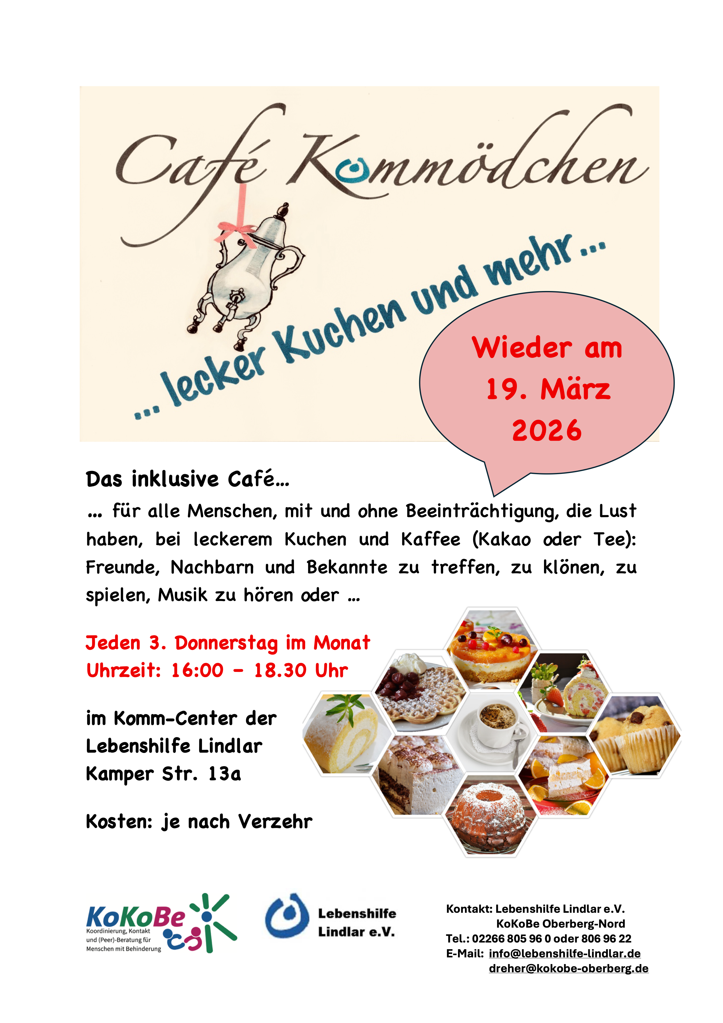 ...für alle Menschen, mit und ohne Beeinträchtigung, die Lust haben, bei leckerem Kuchen und Kaffee (Kakao oder Tee) Freunde, Nachbarn und Bekannte zu treffen, zu klönen, zu spielen, Musik zu hören oder...